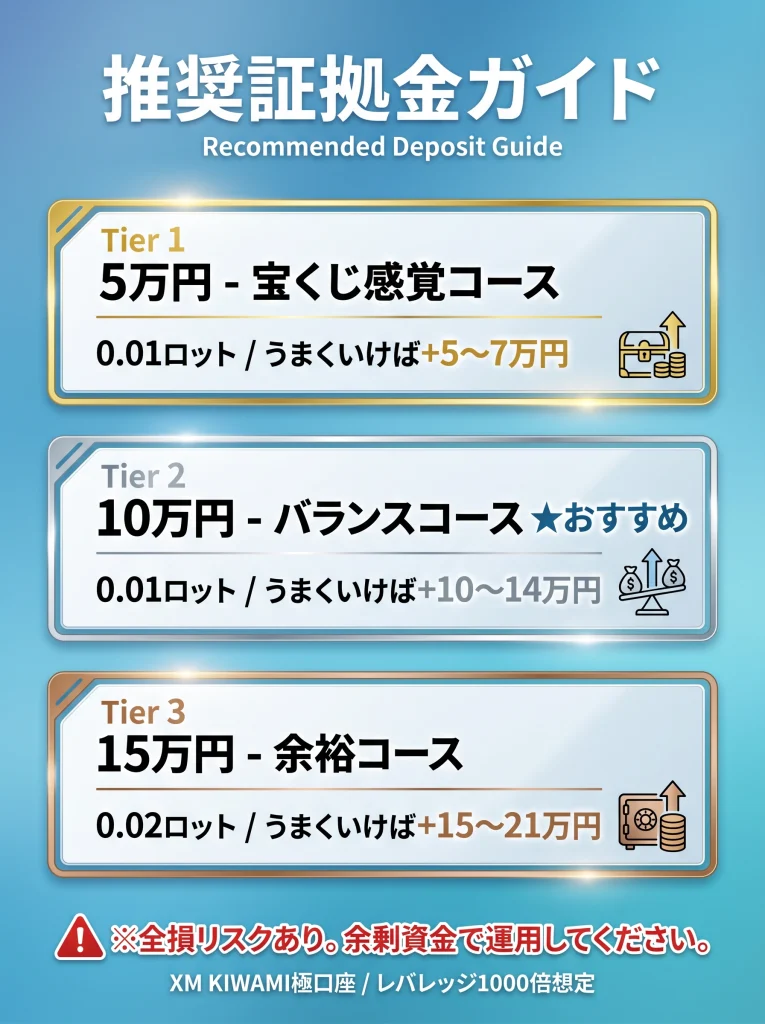▲ 証拠金別の運用コースガイド。余剰資金の範囲内でお選びください。