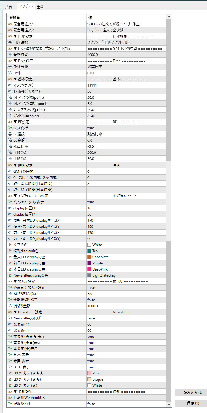 trueにした重要度の経済指標のみNewsFilterが機能します。