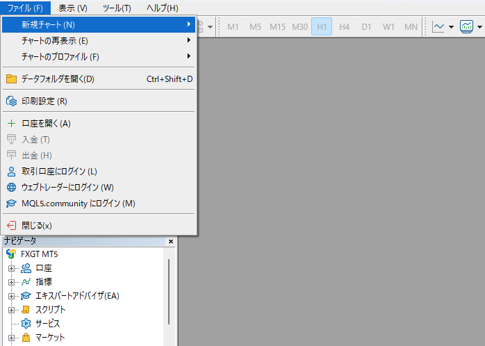 MT5の通貨チャートの開き方と時間足について
