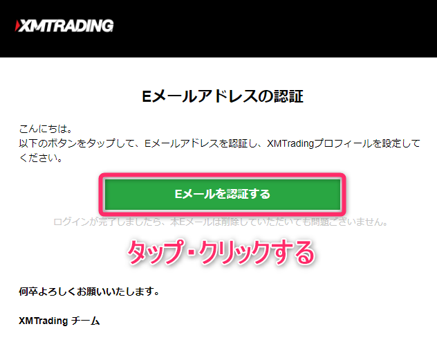 そのメール内に「Eメールを認証する」という緑色のボタンがあるので、タップもしくはクリックして認証を完了させましょう!